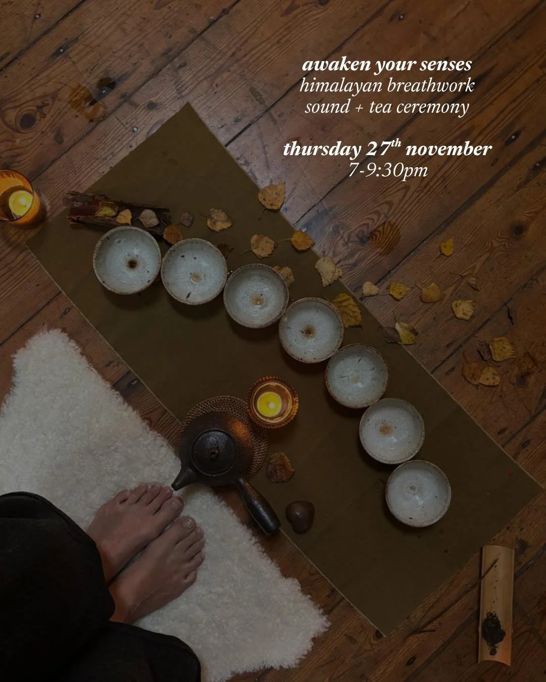 pairing Himalayan Breathwork with Tea Ceremony on Tuesday 1st of April from 7-9:30pm, cultivating expansion and connection through practice and community.